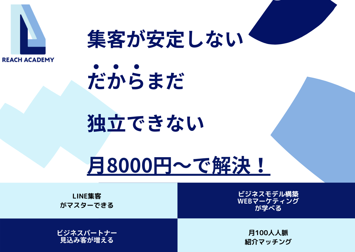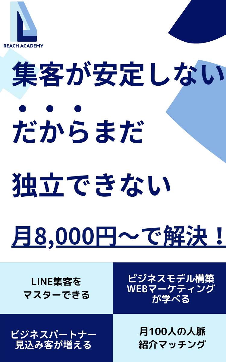 このサービスにより、時間とお金をかけずに、見込み客やあなたを応援してくれるビジネスパートナーを見つけることができます。 REACHメンバーの属性は、個人事業主、小規模事業経営者、副業中の会社員です。